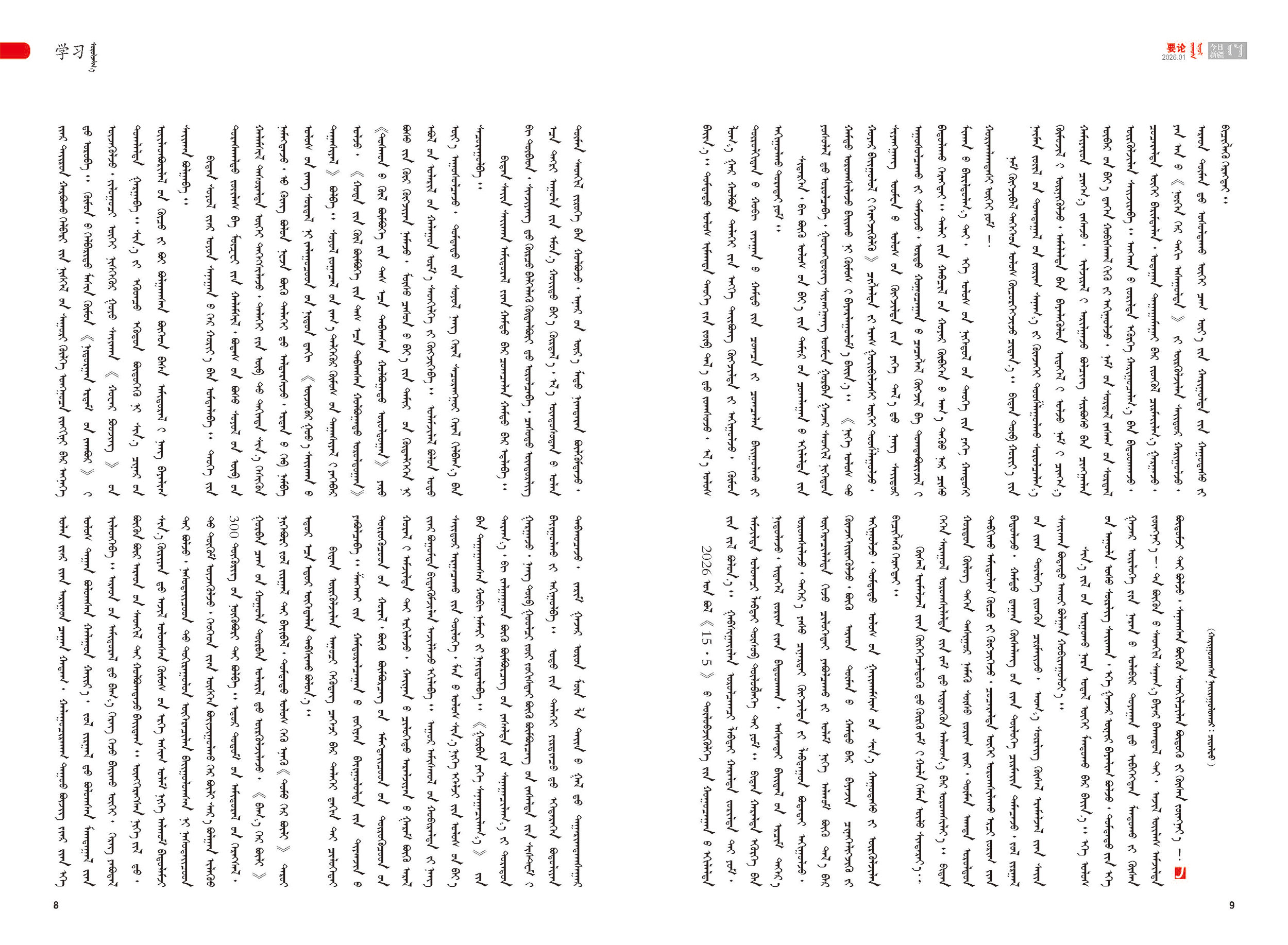《今日新疆》(蒙古文)2026年第1期總265期