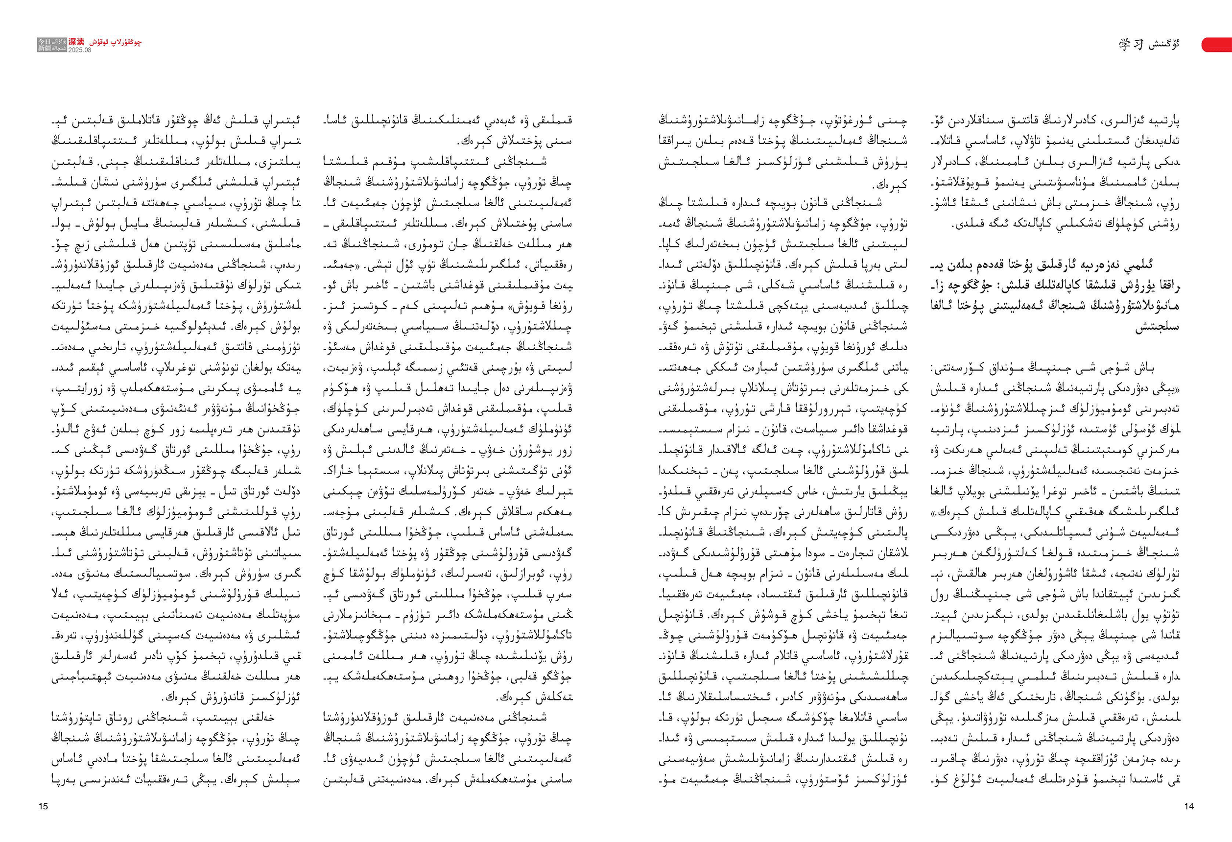 《今日新疆》(維吾爾文)2025年第8期總260期