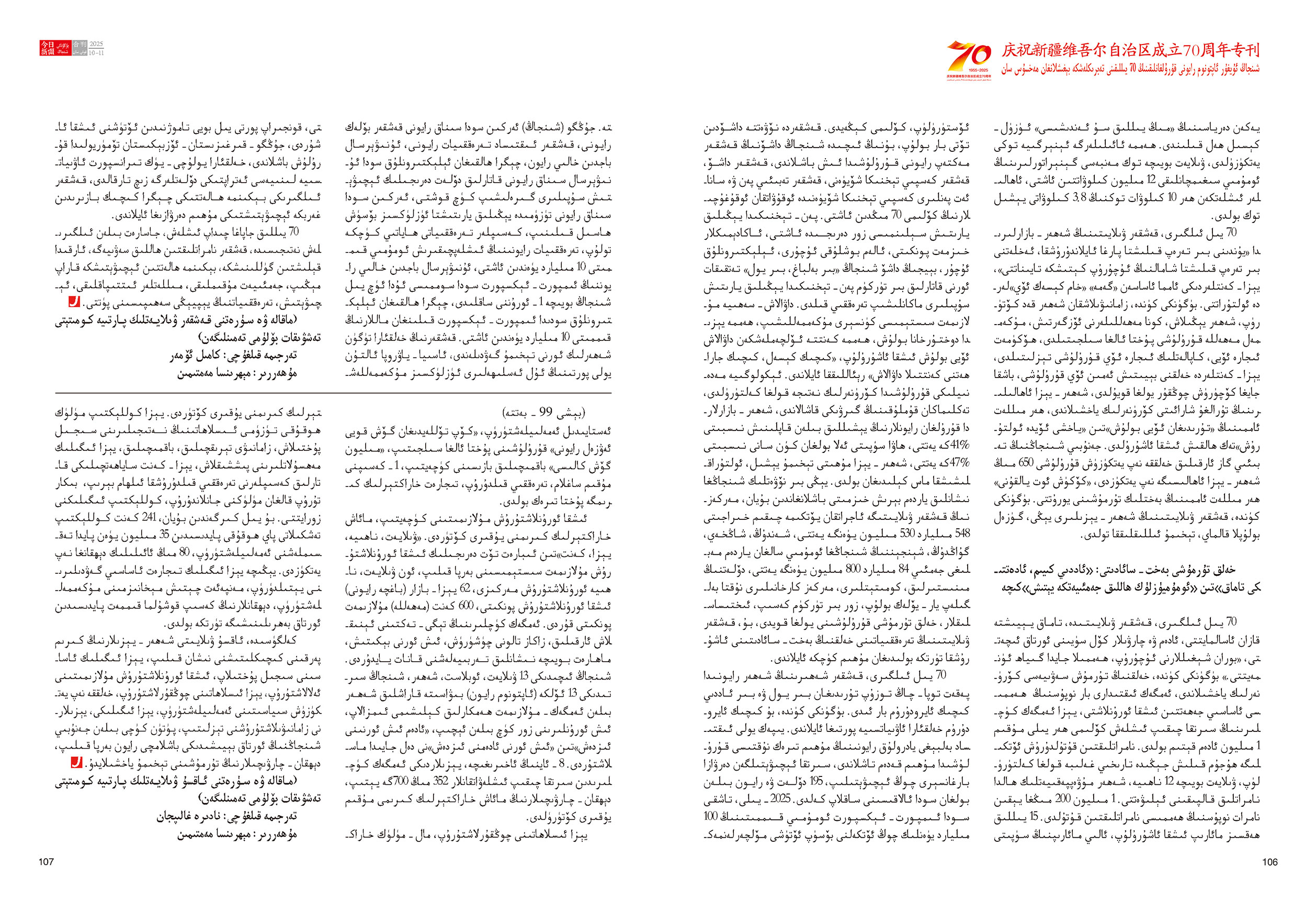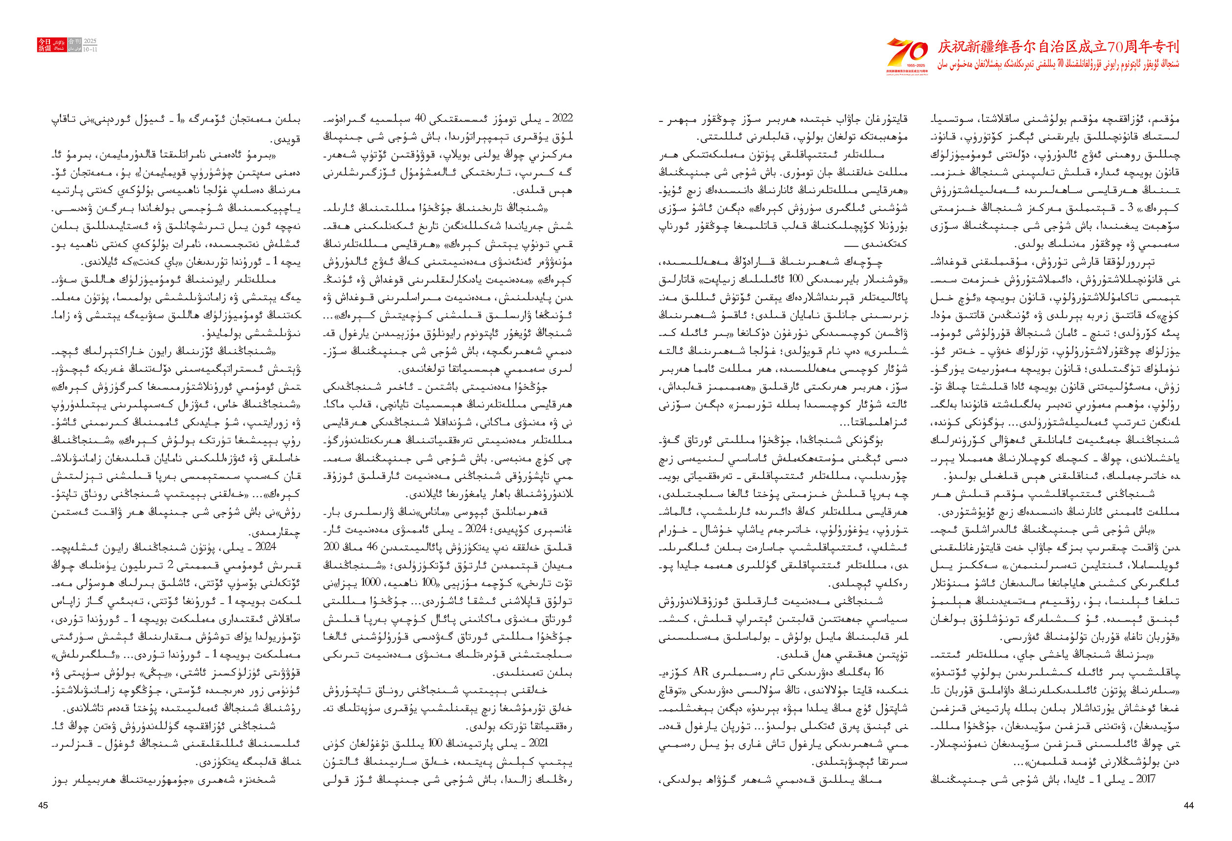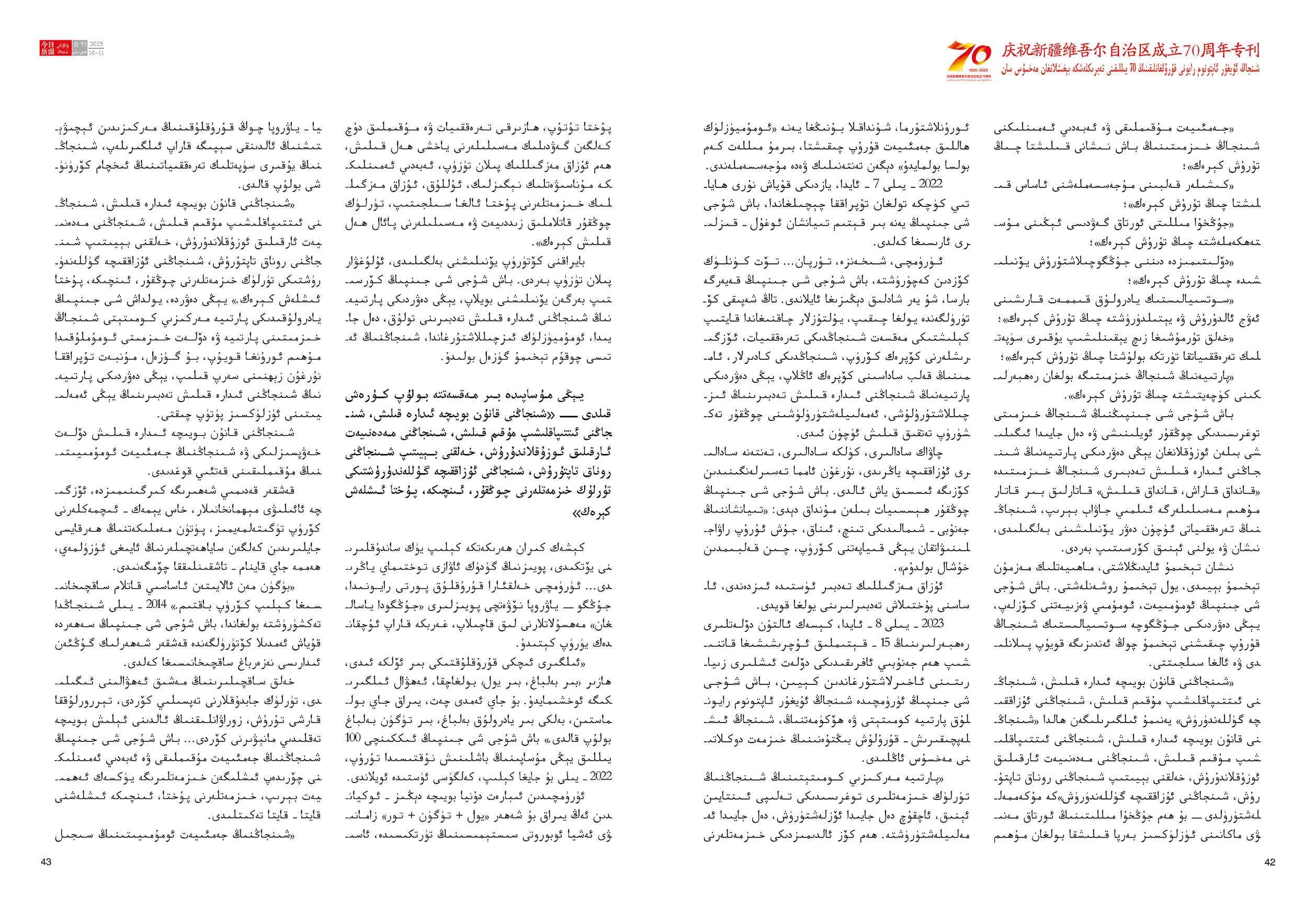 《今日新疆》(維吾爾文)2025年第10-11期總262-263期