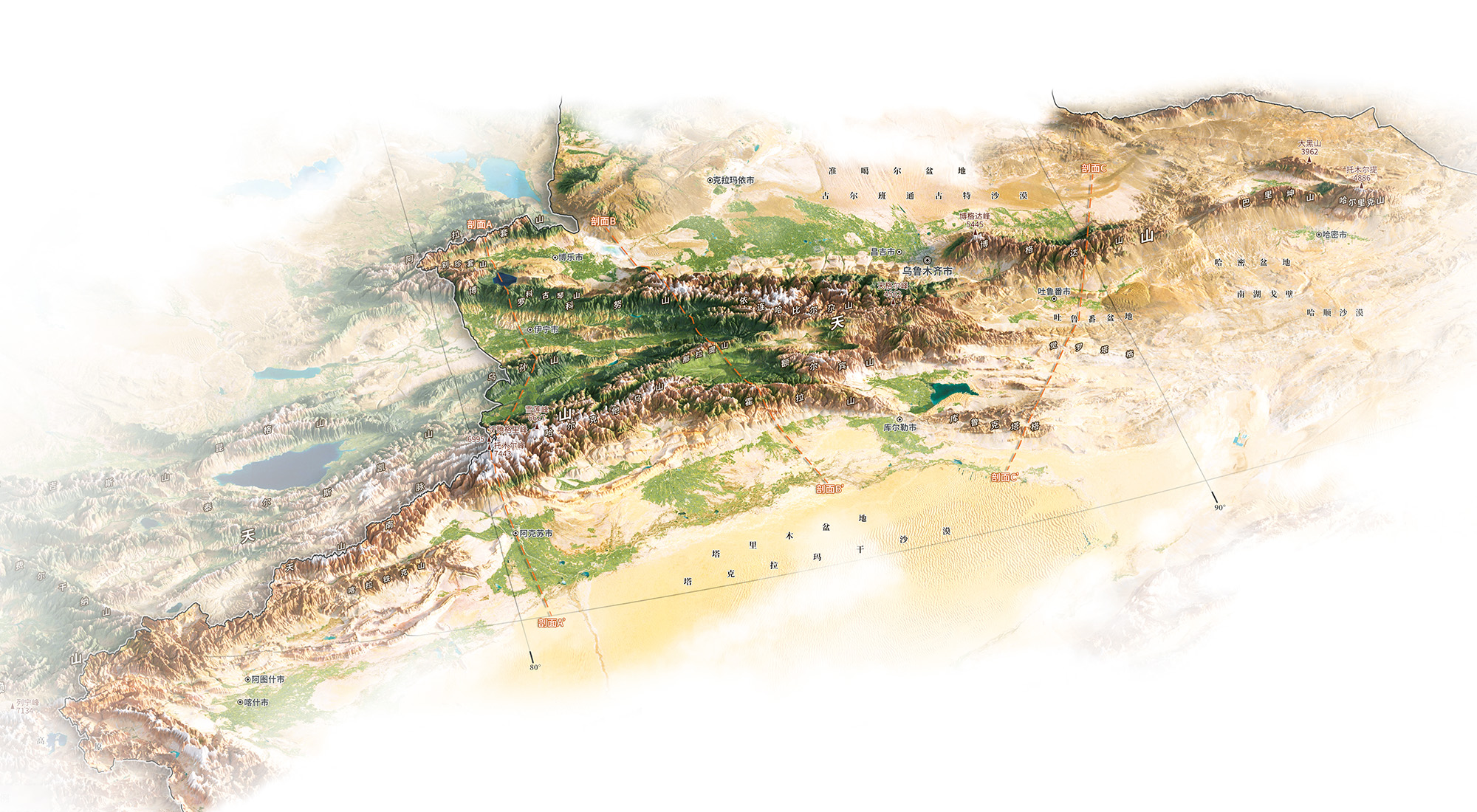 銜“三山”跨“兩盆”,共同構(gòu)筑一條北起阿爾泰山脈,南至昆侖山脈的最快高速公路通道。