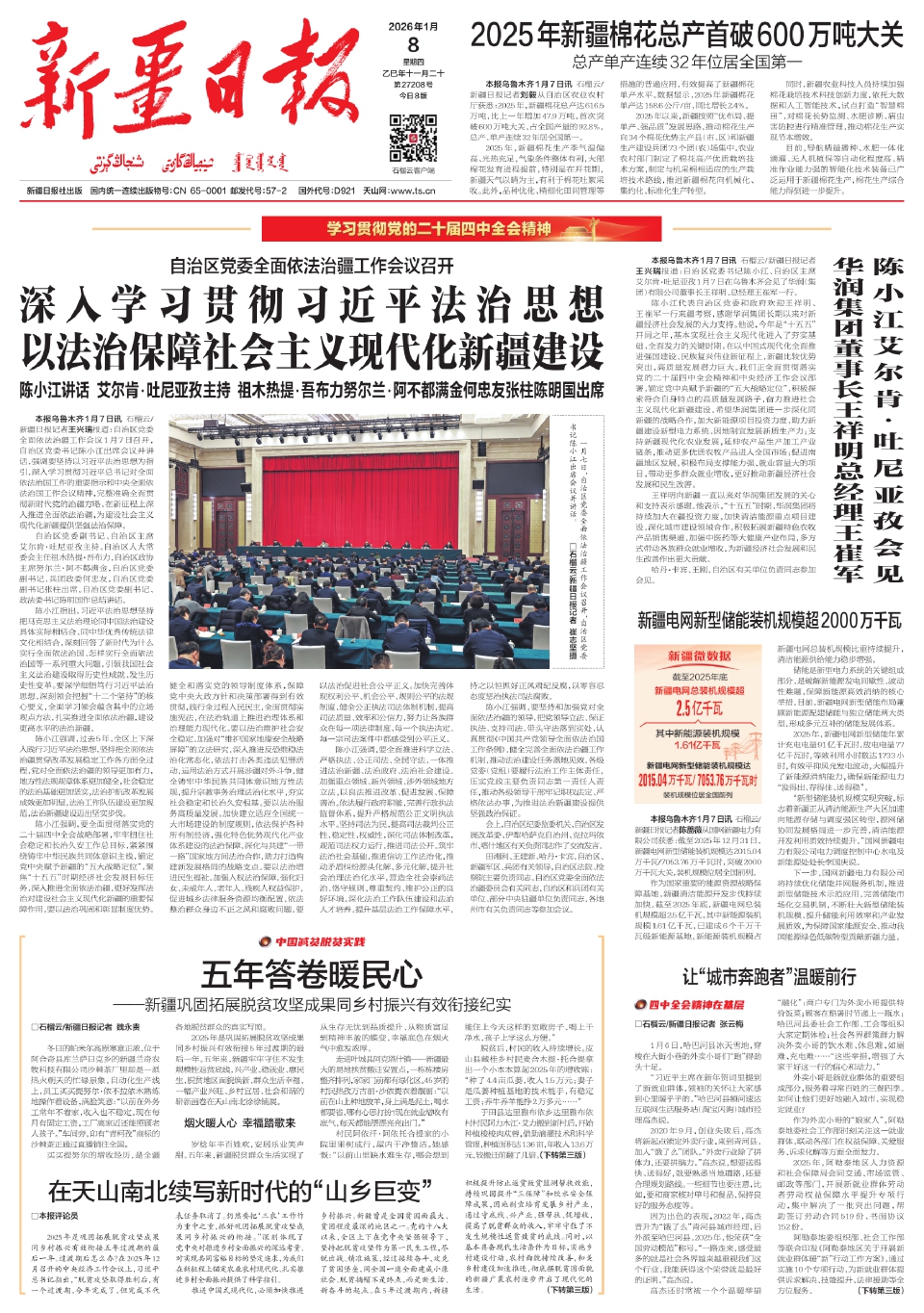 征程萬里風(fēng)正勁,重任千鈞再出發(fā)。期待全體與會代表充分發(fā)揚(yáng)民主,盡心盡責(zé)履職,圍繞關(guān)乎新疆當(dāng)下和未來發(fā)展的大事大計(jì),聚焦人民群眾的急難愁盼,講真話、謀良策、出實(shí)招。