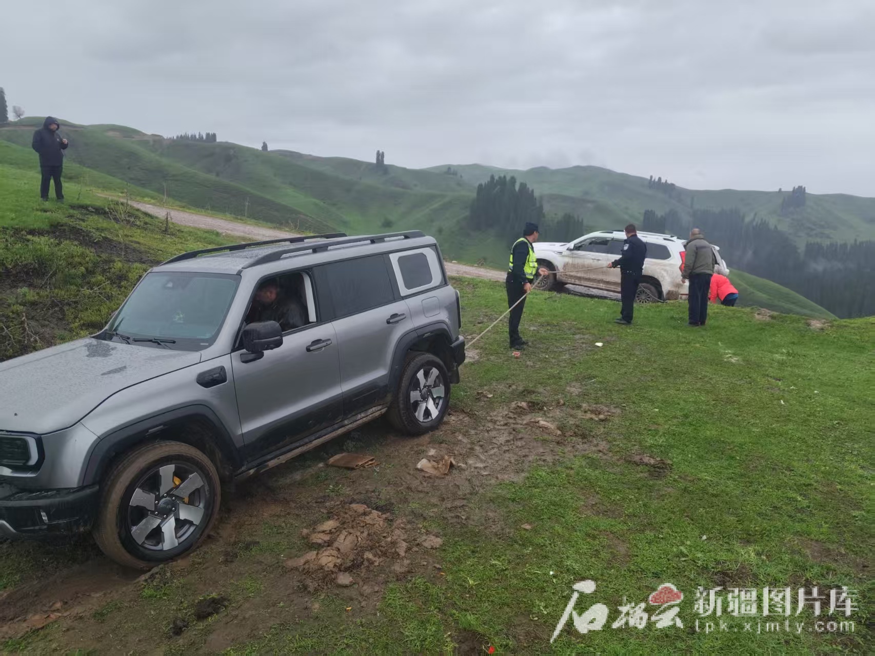 5月1日夜間至5月2日白天,新源縣出現(xiàn)強(qiáng)降雨天氣。5月2日16時(shí)許,新源縣公安局喀拉布拉派出所接到游客求助電話,稱在喀拉布拉鎮(zhèn)薩哈村野果林山區(qū)車輛被困,經(jīng)過多次嘗試無法自行脫困。