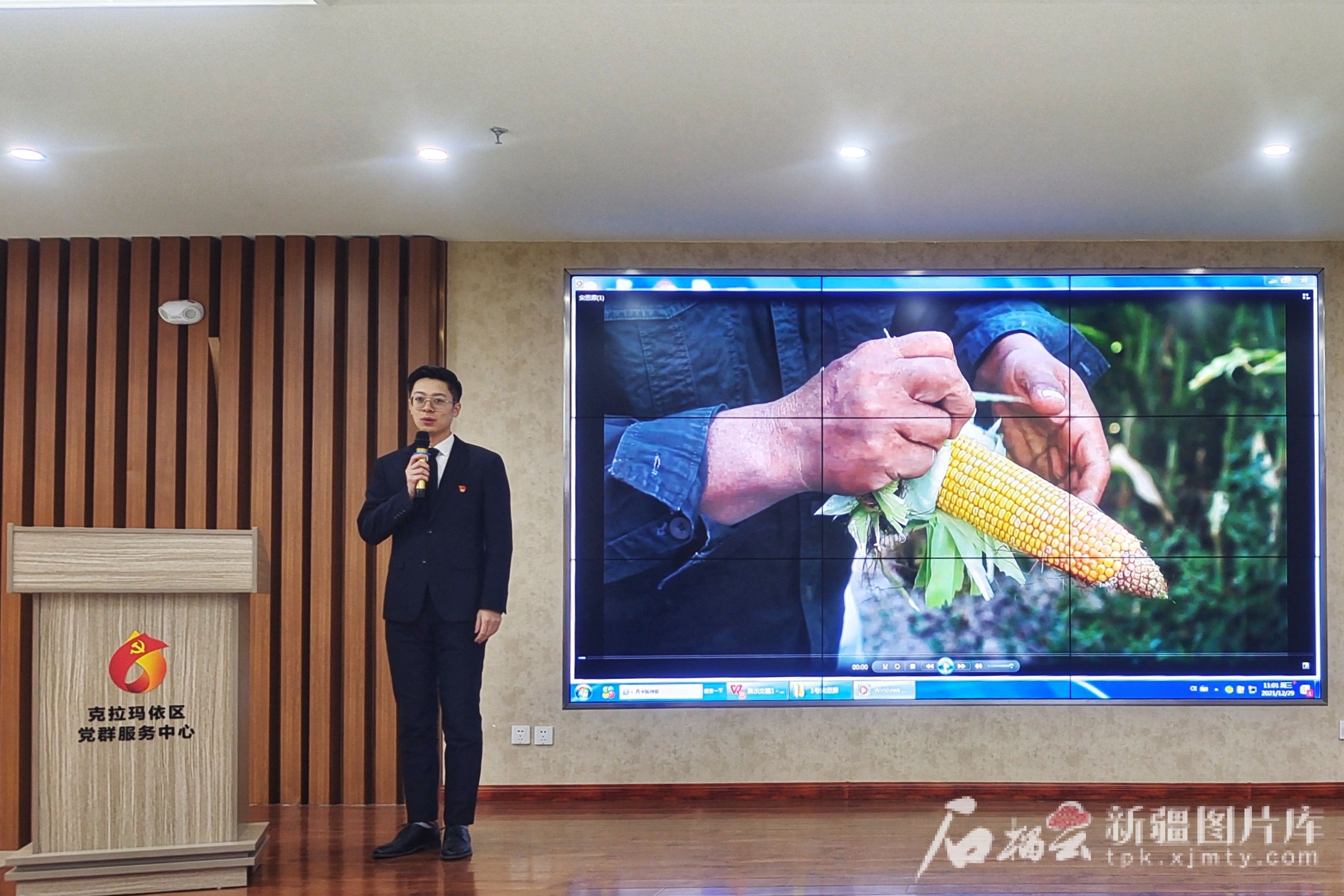 2022年3月,宋思源在克拉瑪依市克拉瑪依區(qū)黨群服務(wù)中心宣講民族團(tuán)結(jié)故事。受訪者本人供圖
