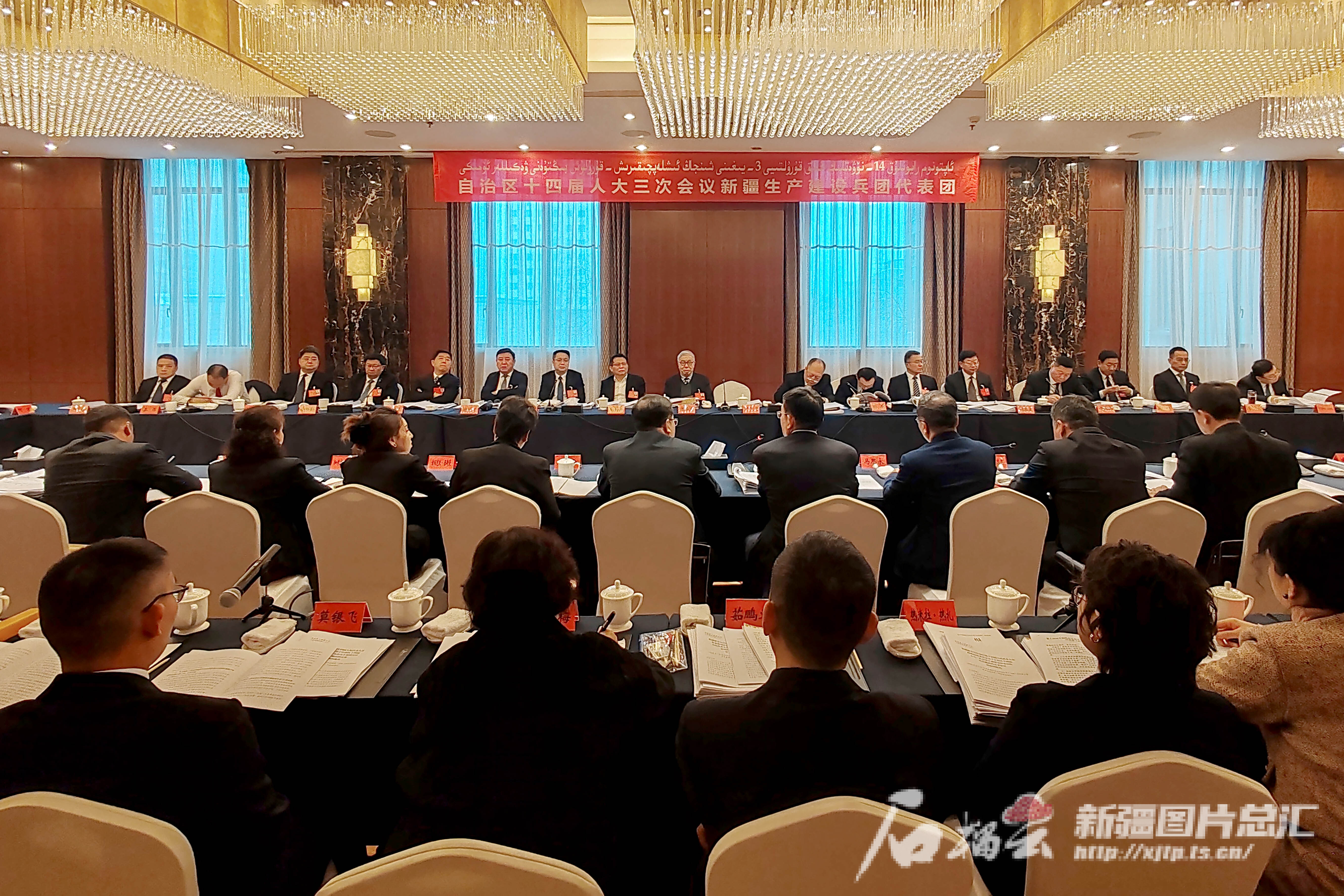 1月21日,自治區(qū)十四屆人大三次會議各代表團舉行全體會議,審議自治區(qū)人大常委會工作報告、自治區(qū)高級人民法院工作報告、自治區(qū)人民檢察院工作報告、自治區(qū)矛盾糾紛多元化解條例(草案)。圖為新疆生產(chǎn)建設(shè)兵團代表團全體會議現(xiàn)場。天山網(wǎng)-新疆日報記者 蔡增樂攝