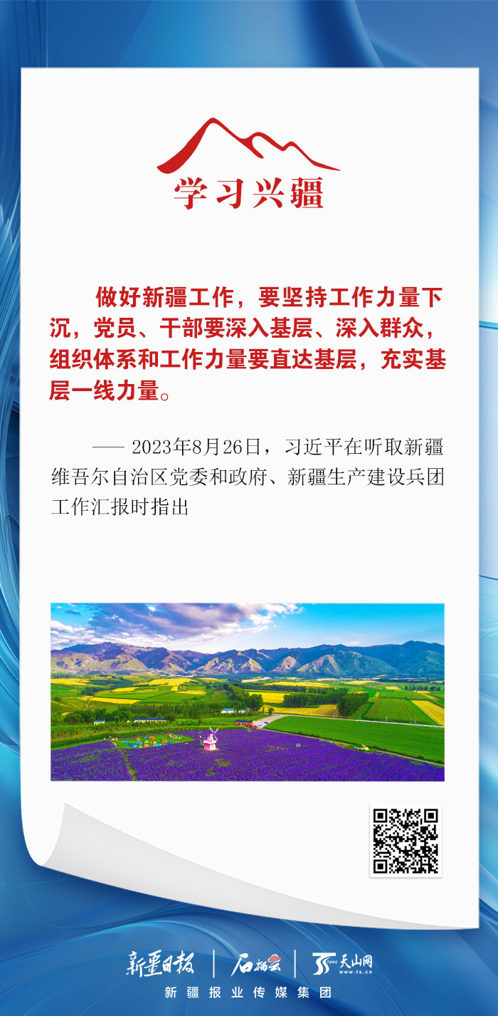 做好新疆工作,要堅持工作力量下沉,黨員、干部要深入基層、深入群眾,組織體系和工作力量要直達基層,充實基層一線力量。
