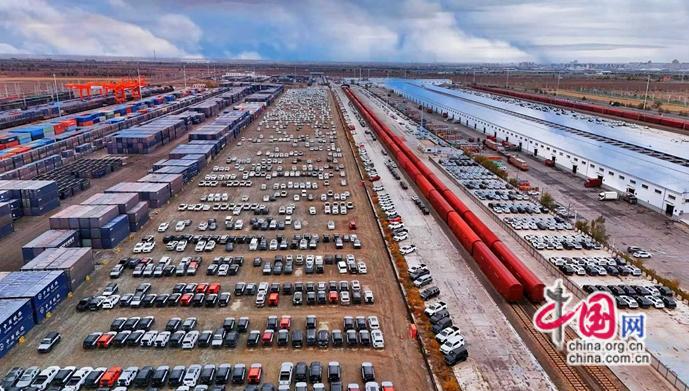 高頻通行,助推樞紐能級躍升。新疆位處西北邊境,雖物產(chǎn)豐富,以往受限于地理位置,難以充分參與國際貿易。但隨著共建“一帶一路”深入推進,中歐班列飛速興起,霍爾果斯鐵路口岸站逐漸成為班列西通道的關鍵節(jié)點。目前,該口岸中歐(中亞)班列日均通行量在27列以上,平均每2小時完成一列入境返程中歐班列的換裝工作,其與阿拉山口口岸站共同貢獻了全國五成以上的中歐班列通行量。隨著班列開行量越來越大,不僅越來越多的日用百貨、機電設備、農副產(chǎn)品等“中國制造”選擇從新疆鐵路口岸走向中亞、歐洲市場,也吸引了汽車組裝、電子產(chǎn)品加工等產(chǎn)業(yè)在口岸周邊聚集,推動“通道經(jīng)濟”向“口岸經(jīng)濟”“產(chǎn)業(yè)經(jīng)濟” 轉型,讓新疆正成為輻射亞歐的國際物流與貿易樞紐。